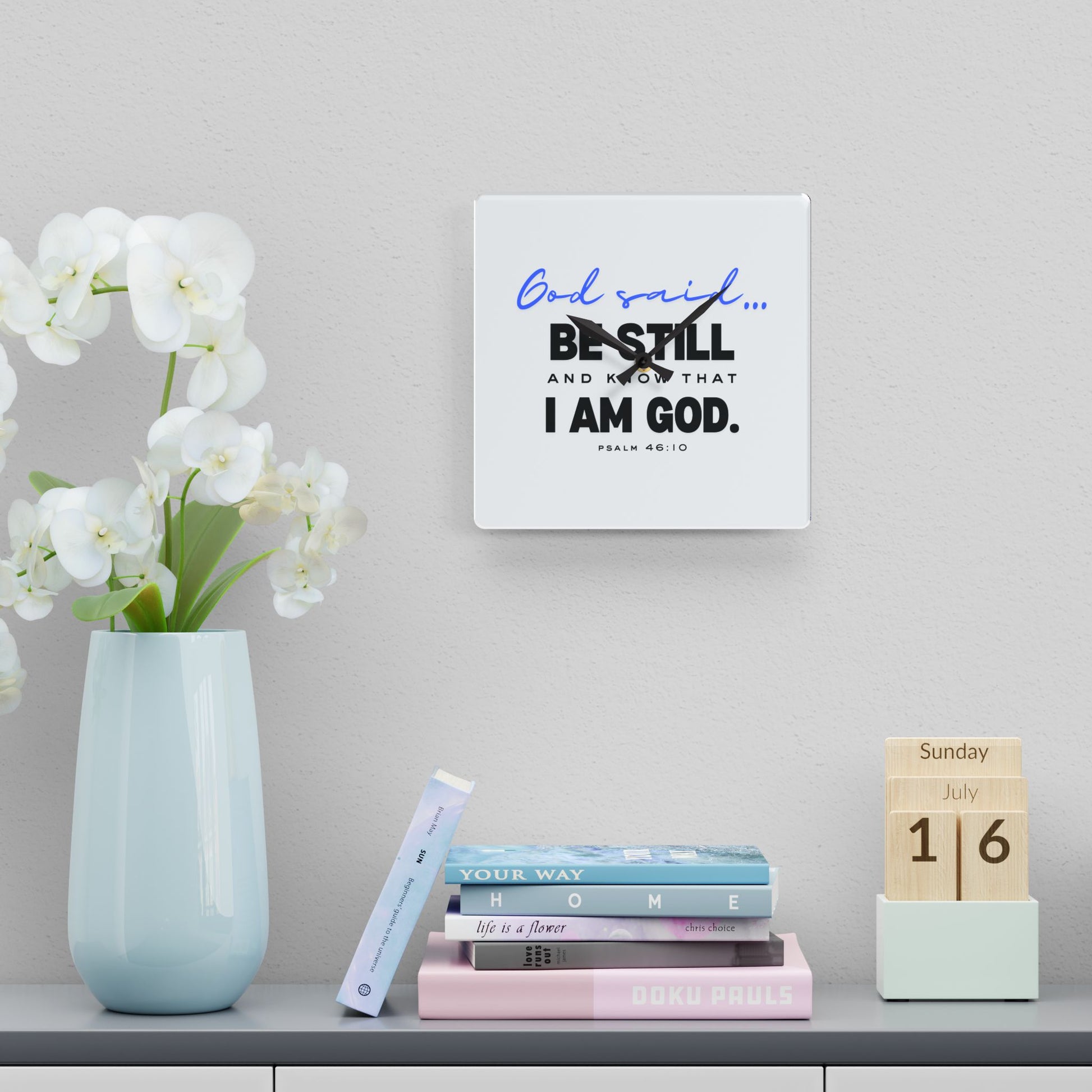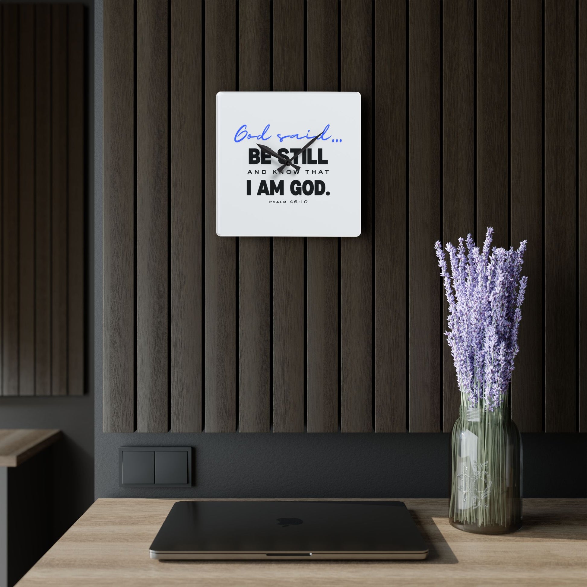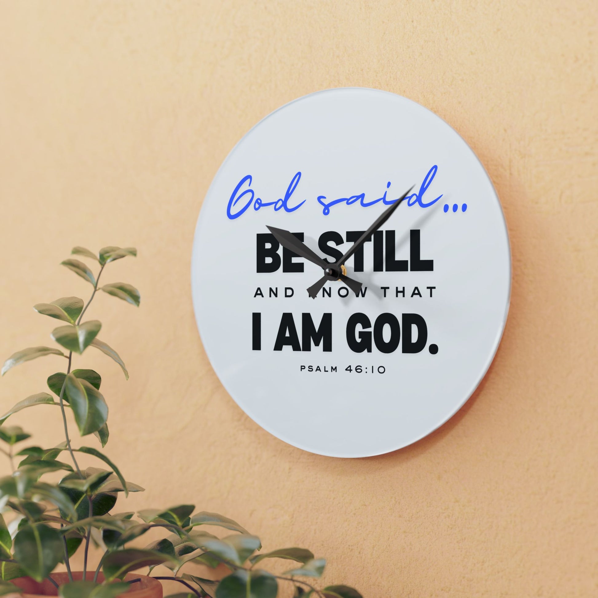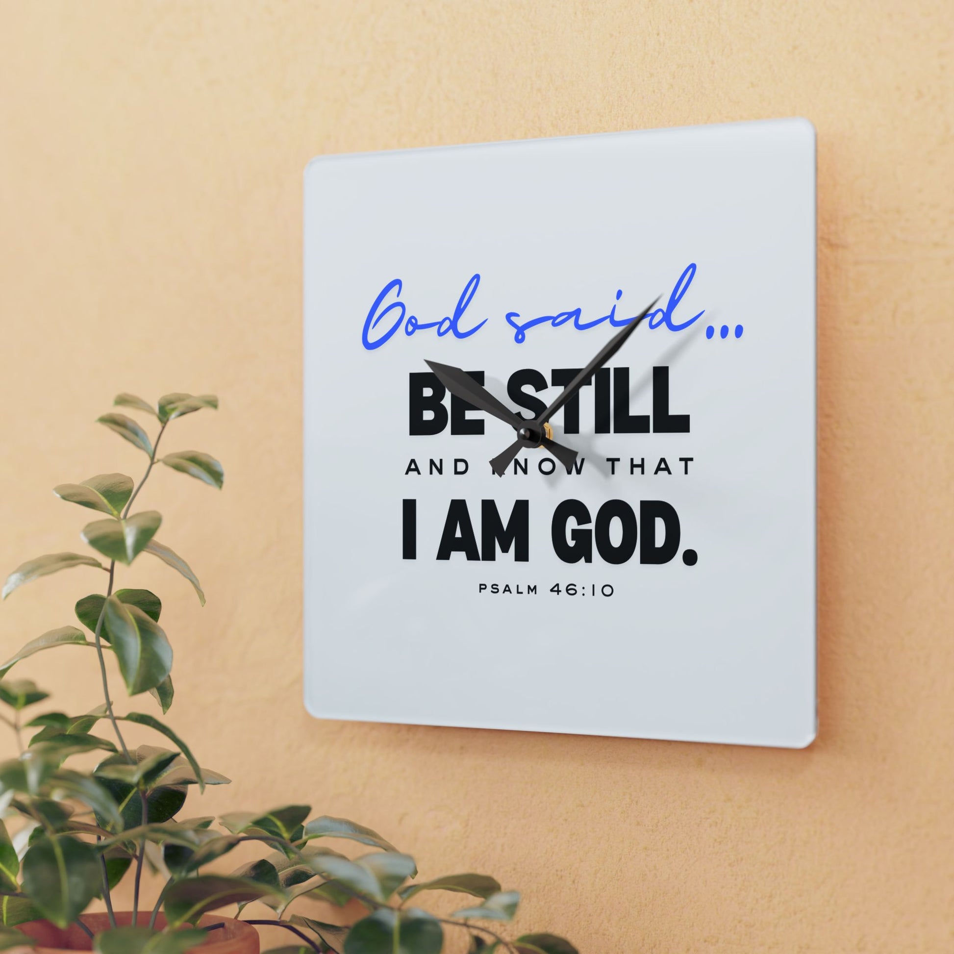 Acrylic Wall Clock Enhance your space with our "God said... Be Still and Know That I Am God" acrylic wall clock, combining timeless style with an inspirational message from Psalm 46:10.