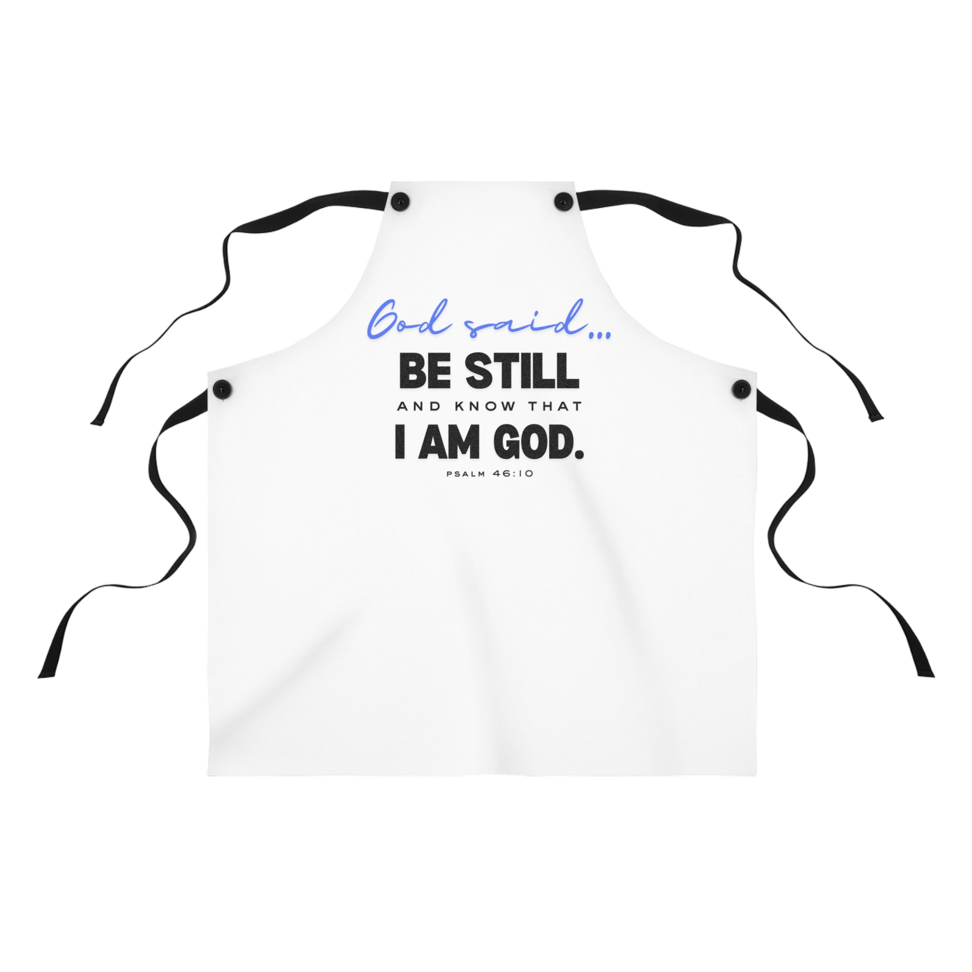 Add a touch of faith to your culinary experience with our "God said... Be Still and Know That I Am God" apron.