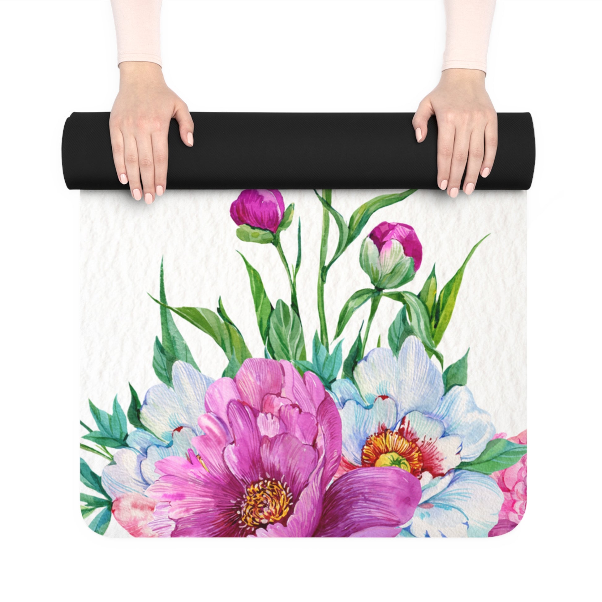 Each mat is adorned with edge-to-edge printing in exquisite detail, showcasing the message of Jesus's love with clarity and beauty. The microfiber suede top offers a soft and smooth surface for your hands and feet, while the natural rubber bottom guarantees durability and stability on any surface.