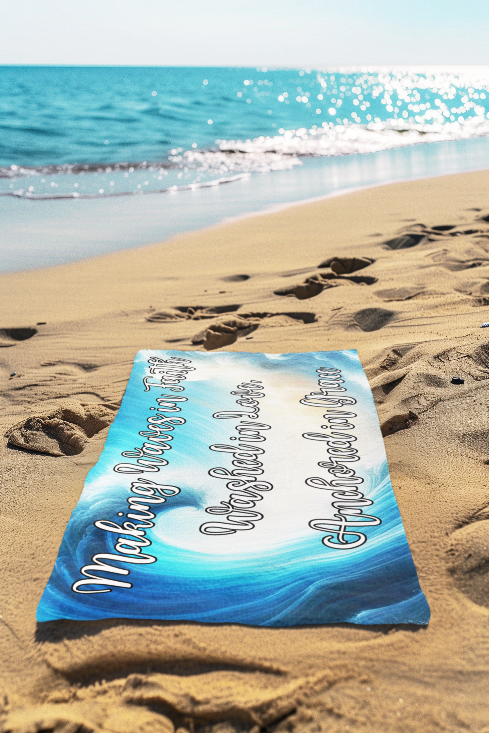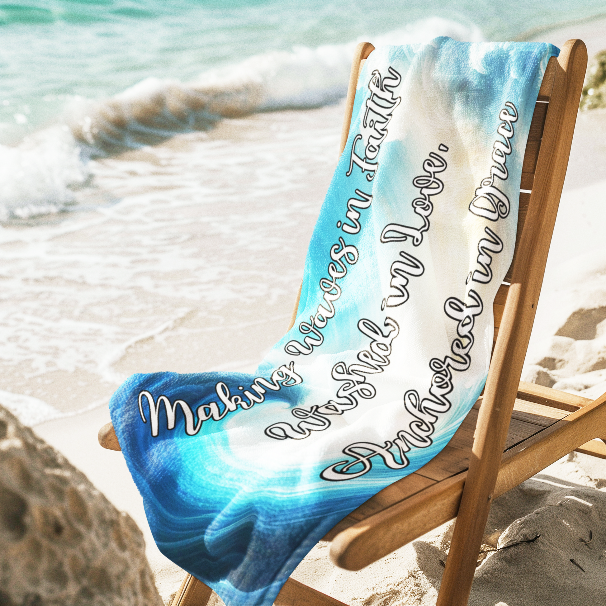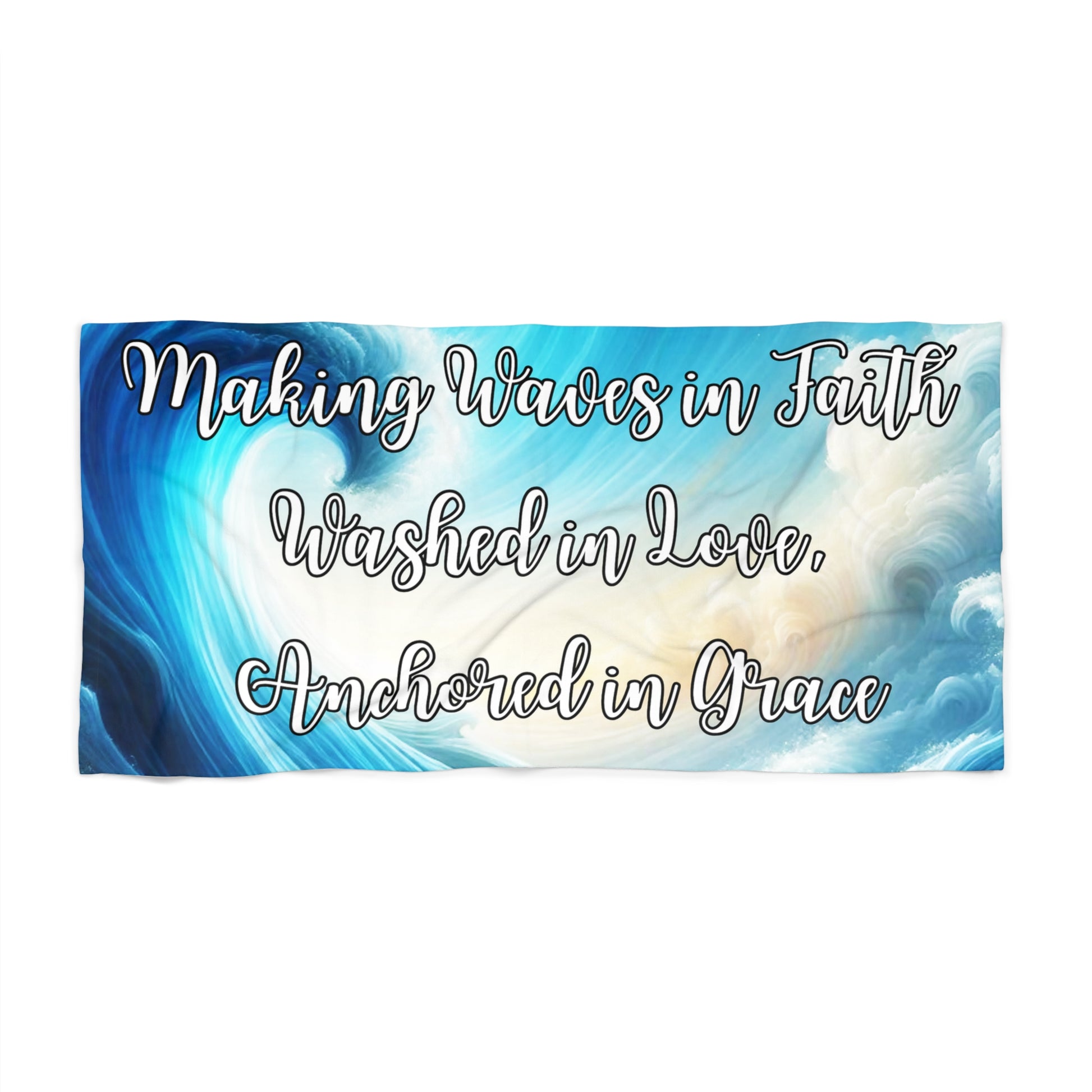 Making Waves in Faith, Washed in Love, Anchored in Grace Beach Towel