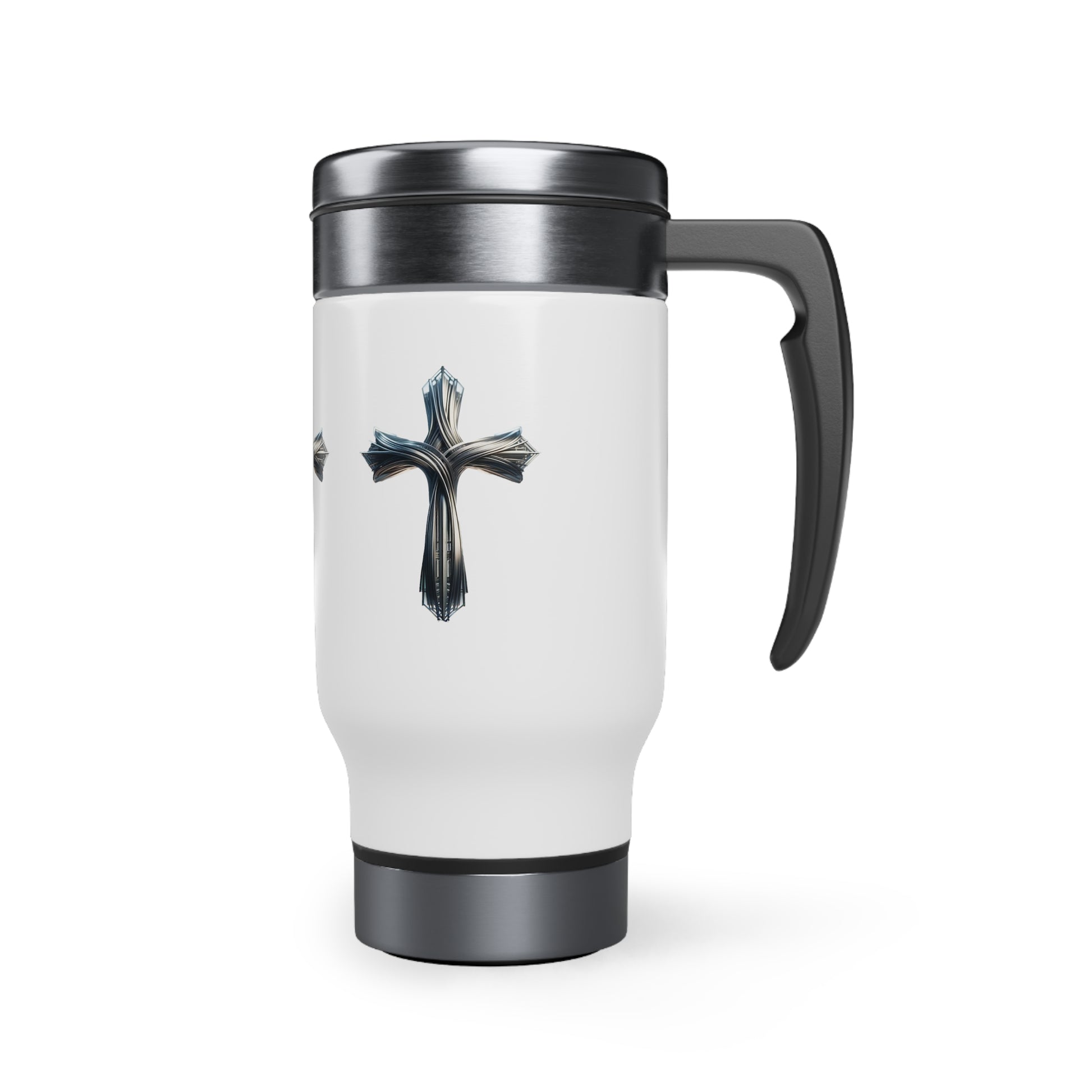 Trinity of Faith: Stainless Steel Travel Mug with Handle, 14oz adorned with Metallic Crosses